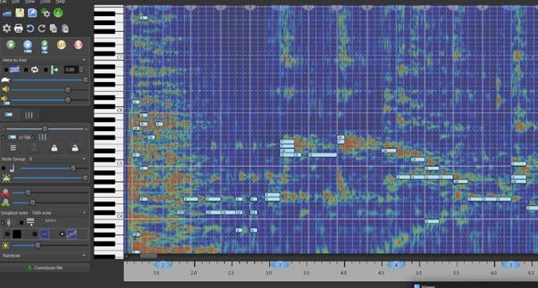 This particular version, by the Wiener Philharmoniker, has a choral part added, hence that odd high note which you might want to edit out. You can either use the built in editor (beyond the scope of this review) or export the project as a MusicXML file. Actually you can export it in a number of formats, such as PDF or MIDI or a CSV containing Beat and Note data or the Spectrogram Amplitudes.