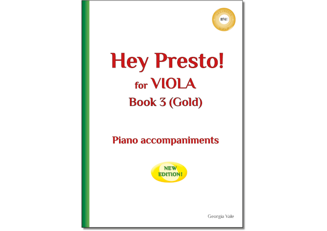 Piano accompaniments for Hey Presto! for VIOLA players, Book 3 Gold.
