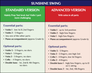 A lively, catchy and light-hearted piece in swing rhythm, with syncopation and basic off-beat rhythms. Harder parts have a real chance to shine and easier parts are kept reassuringly simple, but with some optional figures in the advanced version for those that want more of a challenge! Various sound effects add an extra element of fun!