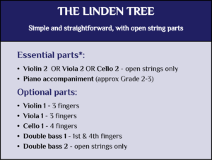 A gentle and flowing piece, very straightforward and ideal for younger groups as all instruments have an open strings only option.