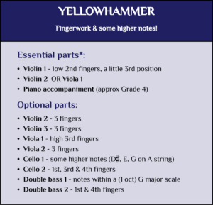 A relaxed piece, inspired by the yellowhammer’s call: ‘little bit of bread and no cheese’! A little more challenging than it looks, but there are countermelodies and interest in every part.