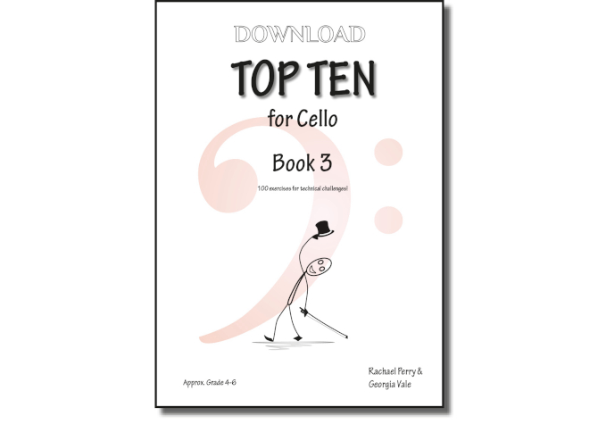 STUDENTS: a fun way to learn cello technique! No long pieces to learn, just short, simple exercises so you can focus on what you need to. Extra, optional challenges if you want them – and stick men to make you laugh! You’ll love learning with Top Ten for CELLO, Book 3!