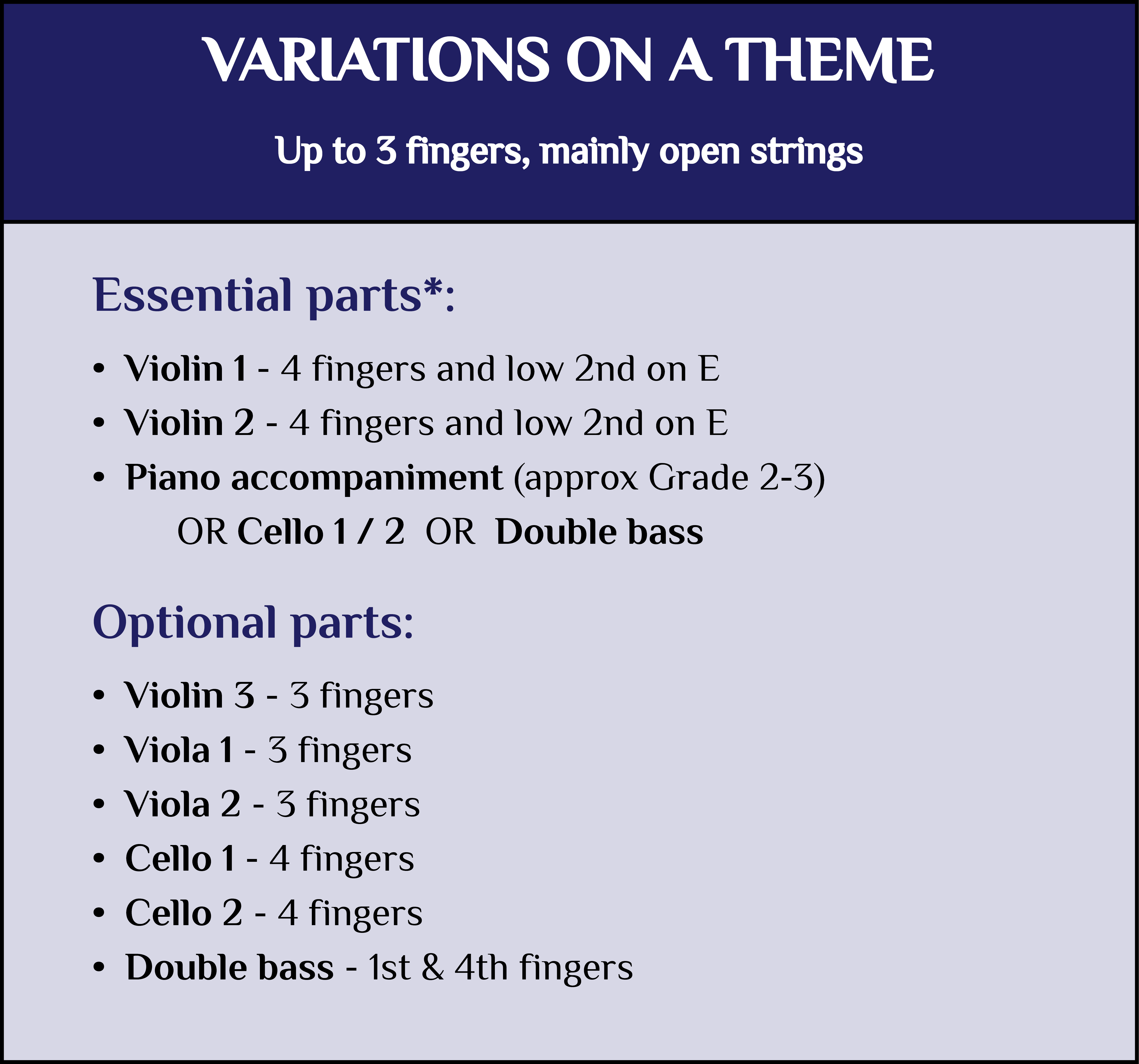 Variations on a well-known ‘mystery’ tune – the piece begins at a slow pace with a pedal in the bass instruments, and the tune emerges gradually. Two increases in tempo bring the piece to a prestissimo climax, with an energetic driving rhythm in all the parts.