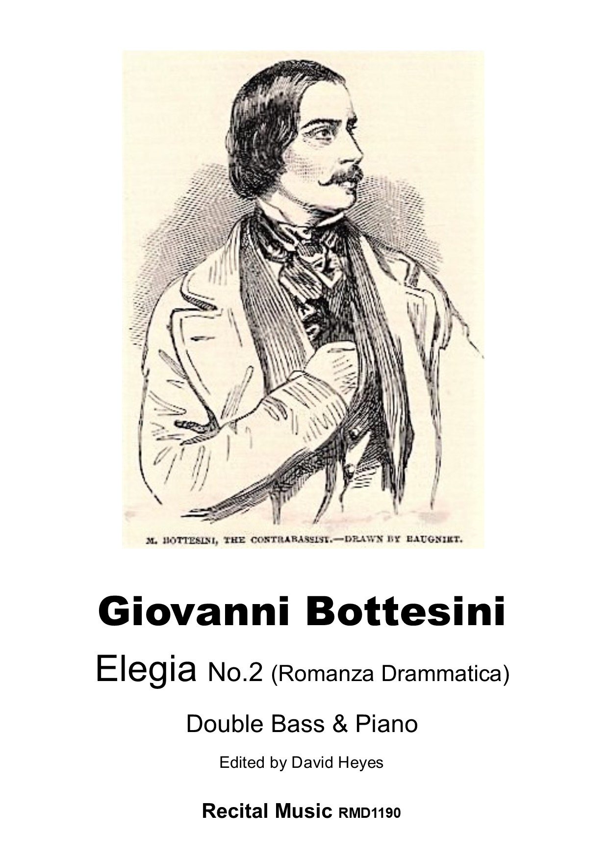 Elegia No.2 (Romanza Drammatica) has a completely different character and style to Bottesini’s other elegies, with a dramatic and serious intent which exploits many lyrical and sonorous possibilities of the double bass. The opening theme is sensuous and evocative, suffused with the operatic flair and dramatic potential of the mid-19th century. Bottesini always exploits the technical challenges in a musical way, using powerful and dramatic double stops and harmonics to add variety and contrast, but the overall character is one of great beauty and elegance. The bass-friendly keys of D minor and D major are used, offering many harmonic and dramatic possibilities. The minor key is wistful and reflective contrasting music of a more dramatic, optimistic and technical nature in the tonic major, but this is Bottesini at his most serious and wistful. Elegia No.2 is not as showy as many pieces by Bottesini, but it allows the advanced bassist to demonstrate both a technical and musical prowess alongside the ability to exploit the lyrical, cantabile and dramatic possibilities of the solo double bass. This edition includes accompaniments for both solo and orchestral tunings and two solo parts – Bottesini’s original bowings from one manuscript source and one edited by David Heyes.