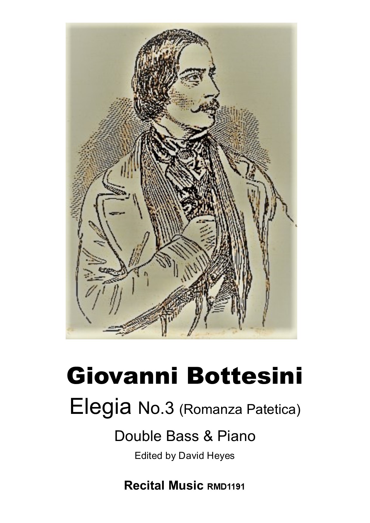 Elegia No.3, also known as Romanza Patetica, was first published by Richault in Paris in the 1879 with the title Mélodie, and is one of Bottesini’s most sublime pieces for the double bass. Probably composed in the middle 1870s, it emphasises the lyrical and sonorous possibilities of the double bass across its entire solo register. The use of D minor/major, sounding E minor/major for solo tuning, offers dramatic potential with the ability for the double bass to be as expressive and eloquent as the cello or violin. Although primarily in treble clef, the melodic line descends to open A, Bottesini’s lowest note, rising to high D in harmonics, one of the highest notes available to the double bass. Elegia No.3 is a perfect piece, ideal for any audience or occasion, and demonstrates the technical and musical prowess of the bassist. It emphasises Bottesini’s supreme compositional skills and why his music is still at the heart of the solo, Repertoire into the 21st-century. Accompaniments for both solo and orchestral tunings and two solo parts – Bottesini’s original bowings from one manuscript source and one edited by David Heyes.